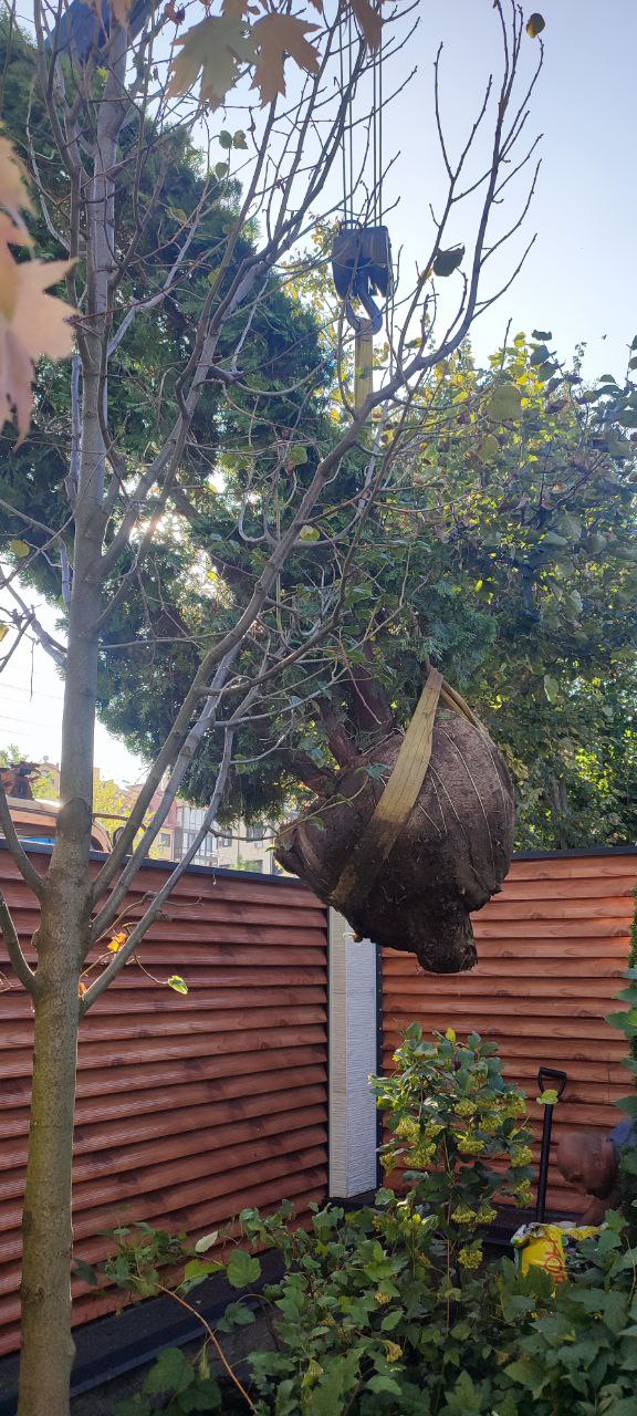 Да, мы оказываем услуги по внутриучастковой пересадке взрослых деревьев с помощью специальной техники.