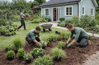 - Осень (сентябрь-ноябрь): Уборка листвы, последняя стрижка газона, влагозарядный полив, подкормка осенними удобрениями, комплексная подготовка сада к зиме (укрытие растений, побелка деревьев), осенняя обрезка плодовых деревьев.